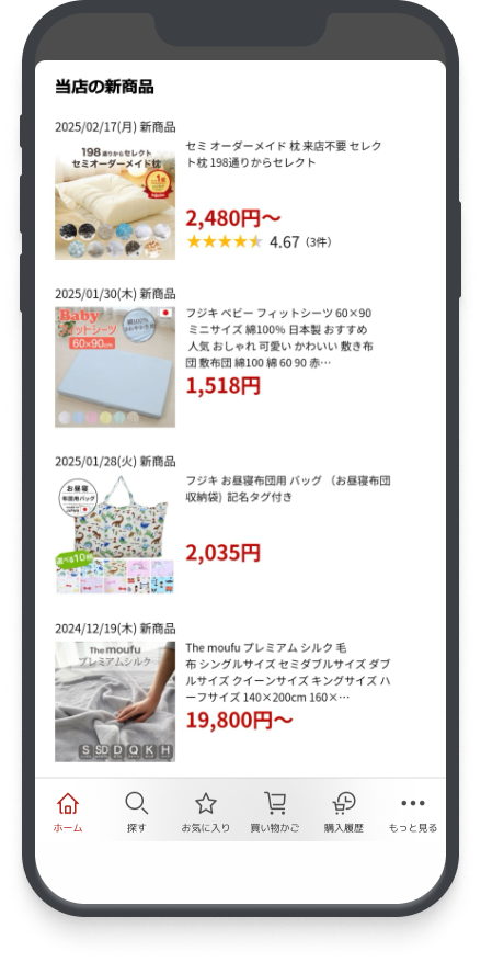 ショップの新着商品を自動表示